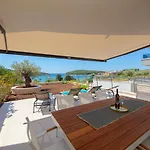 Apartmán Apartman Oranz má pokoje pro hosty zařízené balkónem, televizí a ovládáním klimatizace, a poskytuje ideální ubytování ve městě Banjole.